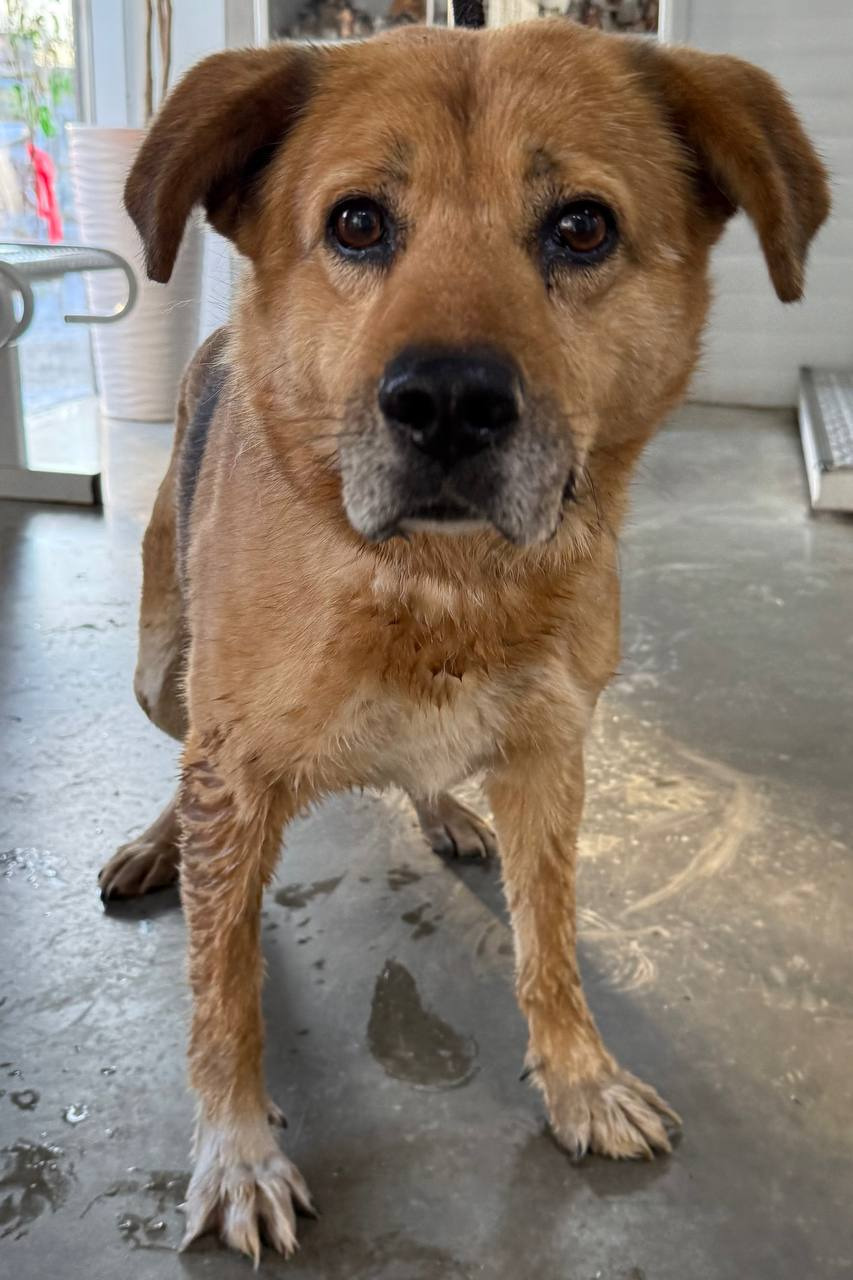собака беспородная, кобель 6 лет, рыже-черного окраса