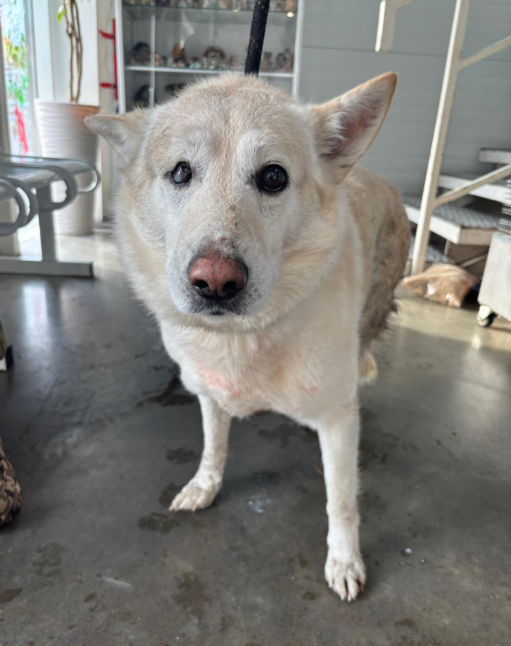собака беспородная, кобель 5 лет,белого окраса