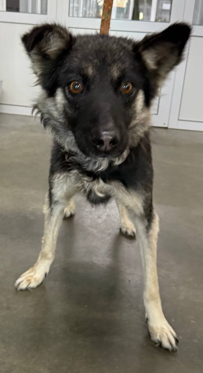 собака беспородная, сука 6 лет, серо-черного окраса