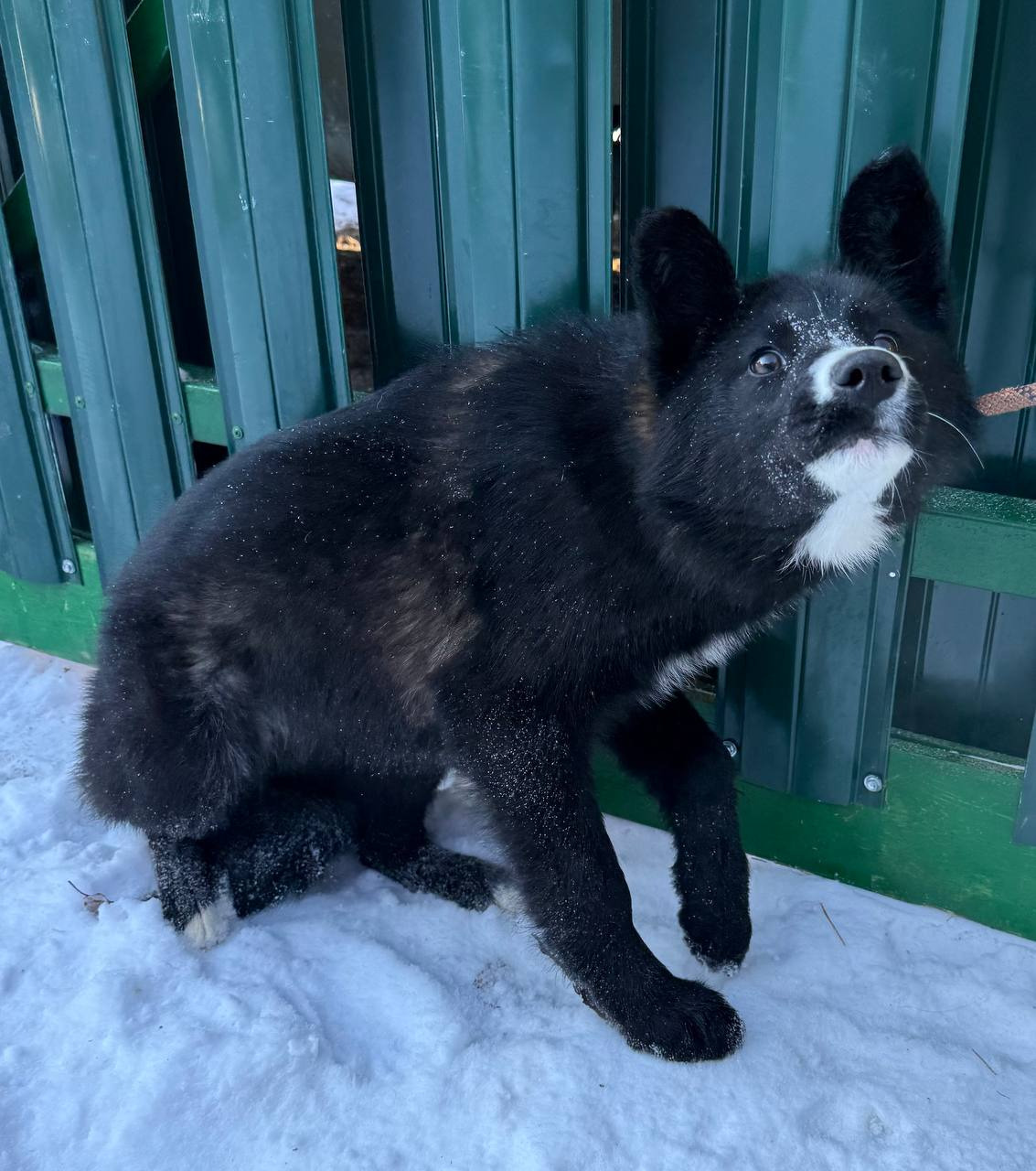 собака беспородная, сука 1 год, черно-белого окраса