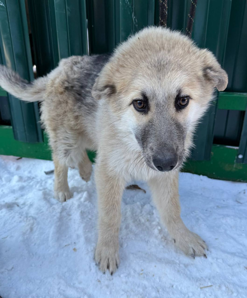 собака беспородная, кобель 8 мес, серо-черного окраса