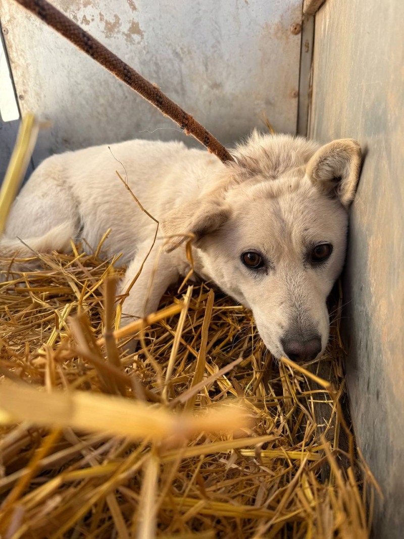 собака беспородная, сука 6 лет, белого окраса