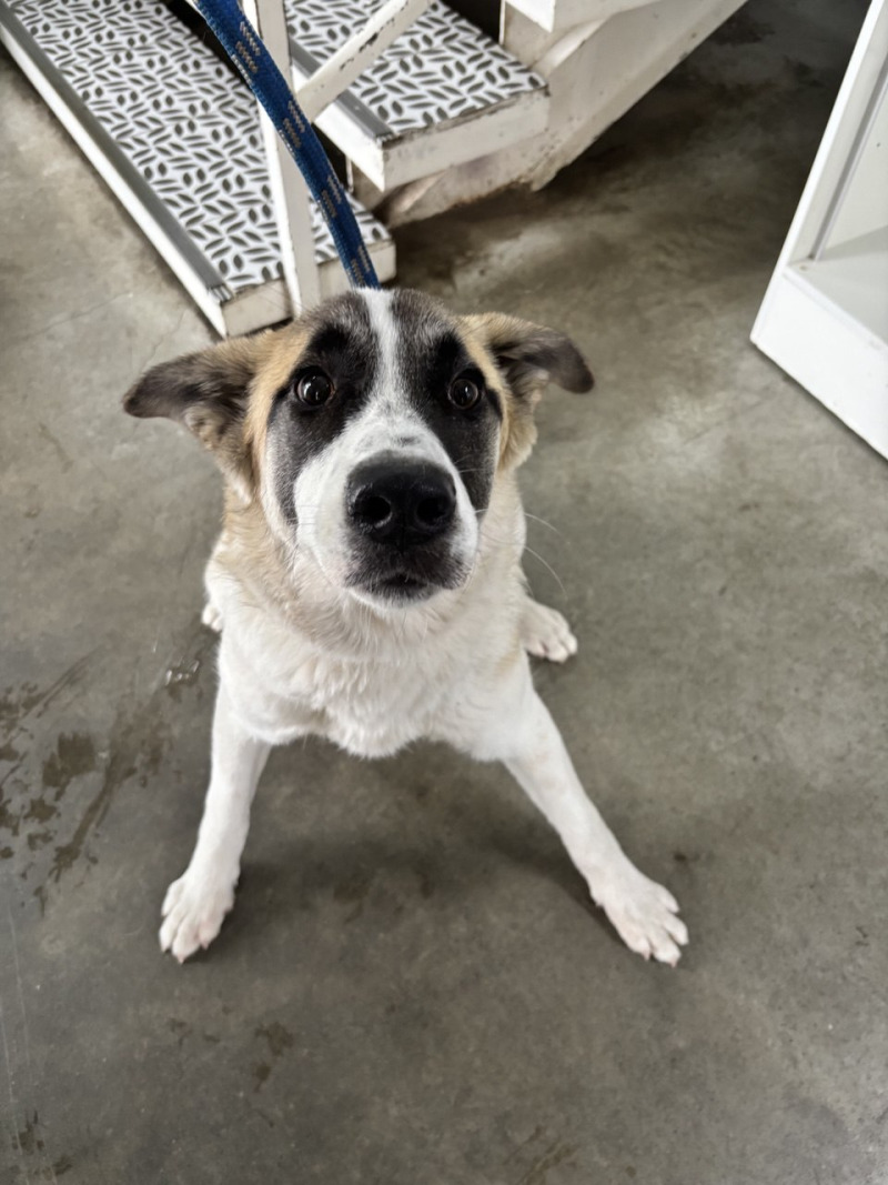собака беспородная, кобель 1 год, трехцветного окраса